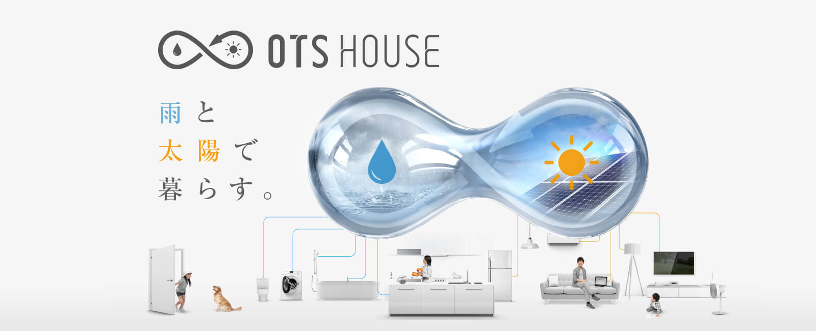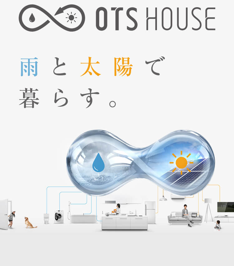 ※1)想定外の気象状況になった場合を除く。※緊急時は上水道より生活水槽に給水するため、上下水道共に契約が必要です。※2)想定外の気象状況になった場合を除く。※緊急時は系統電力を使用するため、系統電力会社との契約が必要です。※上記スペックは、OTS島田ばらの丘コンセプトハウスの実証データ、或いは2018.02~2018.12間の気象データを元に30坪タイプのOTSハウスで完全自給自足が実現できることを目的に選定しています。従って、くらし方の状況、或いは気象条件によっては完全自給自足が成立しないことがあります。